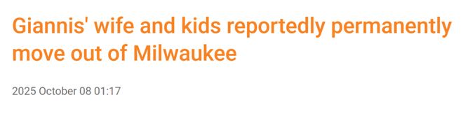 北京时间10月8日,据外媒Tovima报道,雄鹿球星字母哥的家人已经搬出密尔沃基,他的妻子玛丽亚以及四个孩子将永久迁居雅典。