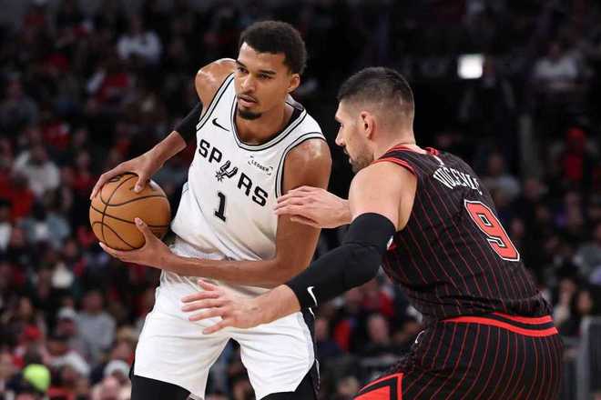 马刺过去两场连续主场战胜火箭与鹈鹕收获2连胜,公牛过去两场连续客场输给雄鹿与骑士遭遇2连败。本场马刺缺少哈珀,公牛缺少吉迪、科林斯与怀特。首节开局马刺5-0领先,公牛连追4分,马刺一波8-0攻势扩大13-4领先,公牛连追4分。文班亚马攻防压制率领马刺逐步扩大24-13领先优势,公牛连追5分,马刺再得6分扩大30-18领先优势。公牛略有反扑追分,首节结束马刺34-26领先公牛,双方首节均是只命中2记三分,文班亚马9+3+2+1。