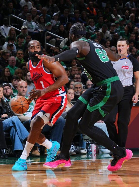 虽然下半场凯尔特人沿用了对哈登的防守策略,但陷入和绿军防守球员贴身肉搏战的哈登,表现明显提升,全场也交出了22投9中的表现,得到了37分、7个篮板、8次助攻和1次抢断,末节最后时刻19秒连得9分更是一度让快船看到了上演大逆转的希望,可惜奇迹没有降临。