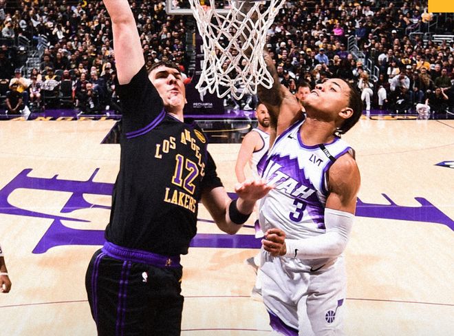 回顾一下比赛,开局爵士反客为主,米哈伊柳克和乔治下起三分雨,贝利炸扣+马卡宁吃饼上篮。詹姆斯喂饼艾顿跳投,东契奇单打,不过爵士这边乔治三分弹无虚发,湖人落后11分。后半段里夫斯造犯规,东契奇接连喂饼海斯和拉拉威亚暴扣,节末八村塁和拉拉威亚内外开花,不过马卡宁站出来内突外投,第一节湖人27-36爵士。进入第二节,马卡宁再度拉开两位数分差,里夫斯连续强攻打停爵士,詹姆斯三分球百步穿杨,随后连续喂饼艾顿和斯玛特!湖人刚起势,乔治立刻回应两记三分。